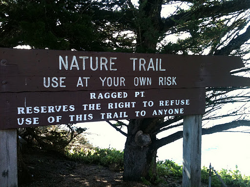 Hearst Castle was amusing and impressive, as gaudy monstrosities go. The tour was a little light on meaty facts about Hearst and his career. We watched a film about him that was pretty cheesy (A. fell asleep halfway through) and mainly just said over and over that he was inspired by his visit to Europe when he was a little boy, to create Hearst Castle. I do treasure our souvenir photo which has us superimposed against a fog-wreathed Hearst Castle. We drove on to Big Sur, listening to NPR like the nerds we are.