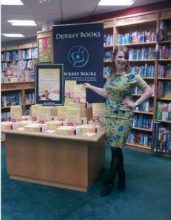 It was really great. I was a little nervous about it before hand because like most people, I don’t always love being the centre of attention (you may or may not think this is compatible with writing a blog). But it was lovely. I was really touched at all the friends, family, neighbours and friends of family who made the effort to come out on a cold Tuesday night to raise a glass. Here’s me in a showgirl pose beside the lovely display at Dubray Books in Blackrock: